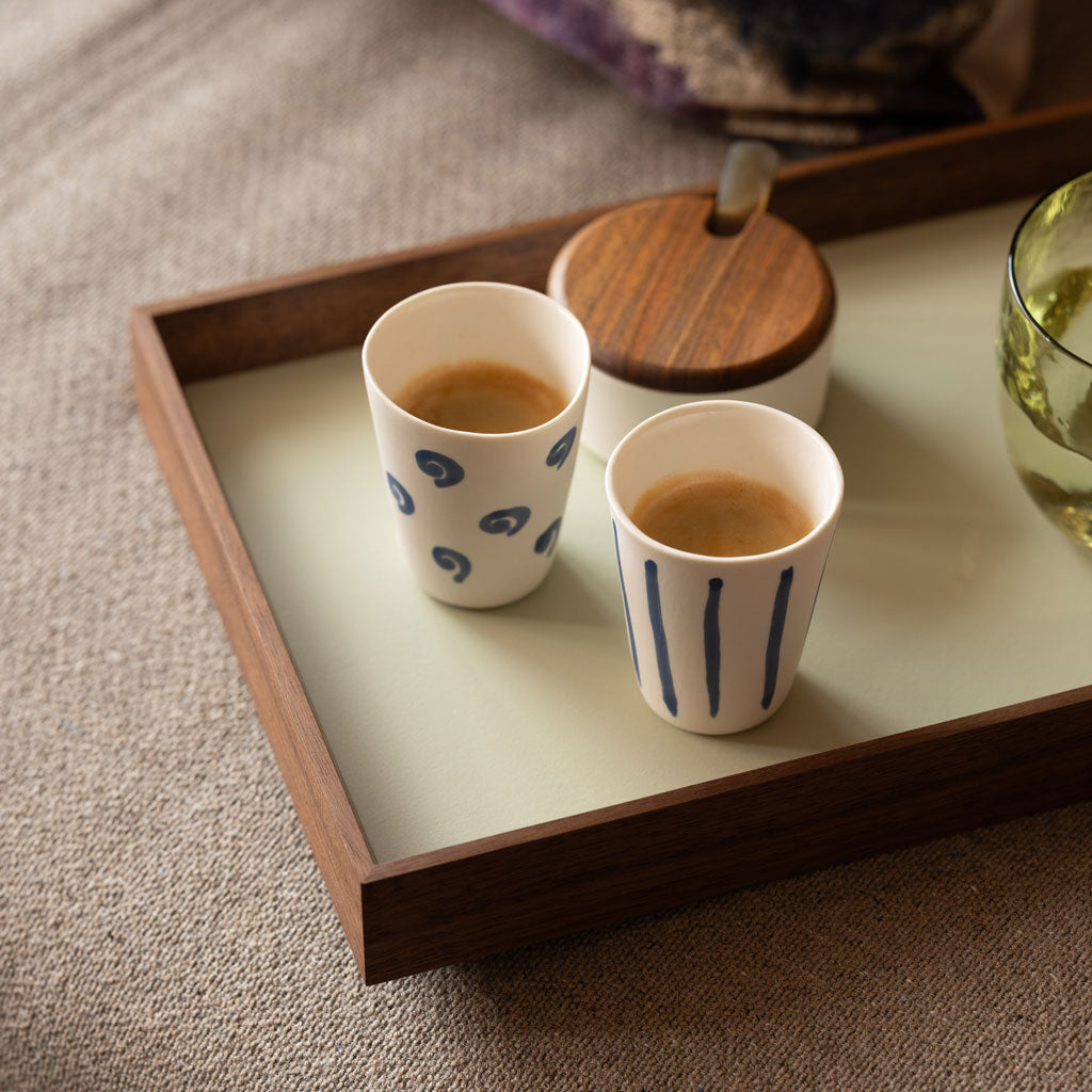 Der niedrige Profil-Rand (Höhe 35 mm, oben schmal, unten etwas dicker) der Tabletts ist so konzipiert, dass diese auch von zarten Händen leicht zu tragen sind.