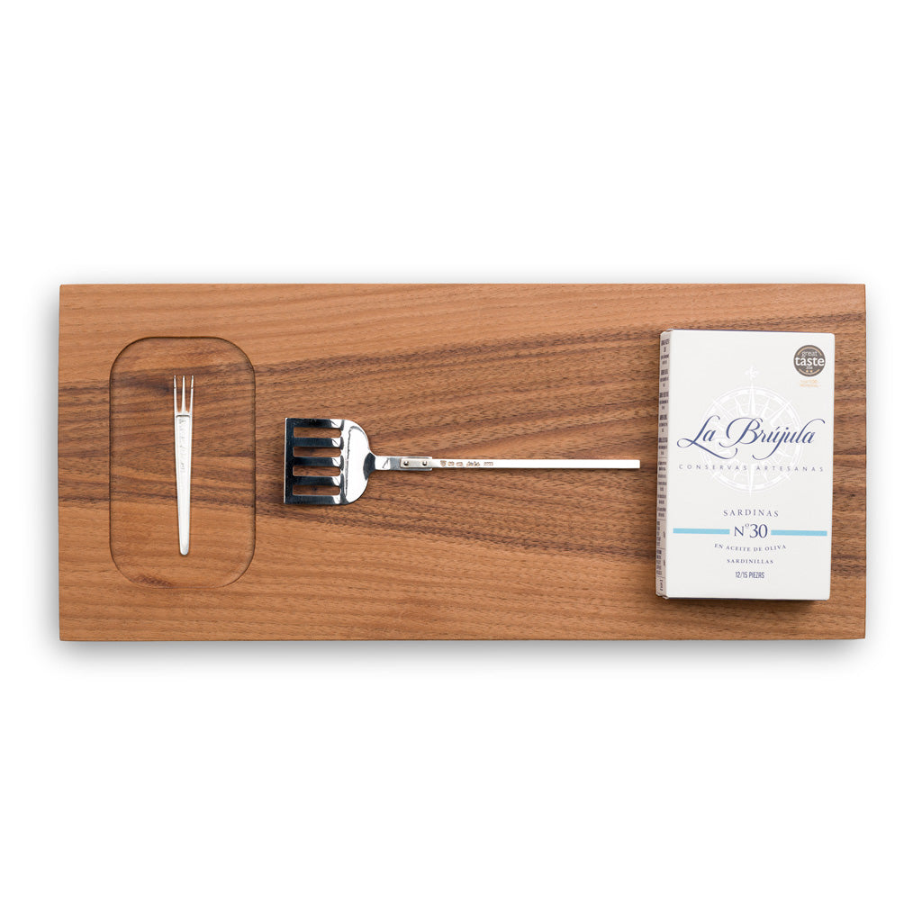 Origineller Sardinenheber bestehend aus einem Griffstiel in 925er Sterlingsilber in Kombination mit einer genieteten Kelle aus Edelstahl, jener Teil mit dem die Sardinen aus der Dose gehoben werden. Eine Punzierung am Silbergriff dokumentiert Silberschmied und Herstellungsort. Wenn man so will eine gelungene Symbiose aus edler Handwerkskunst und idealer Funktionalität.