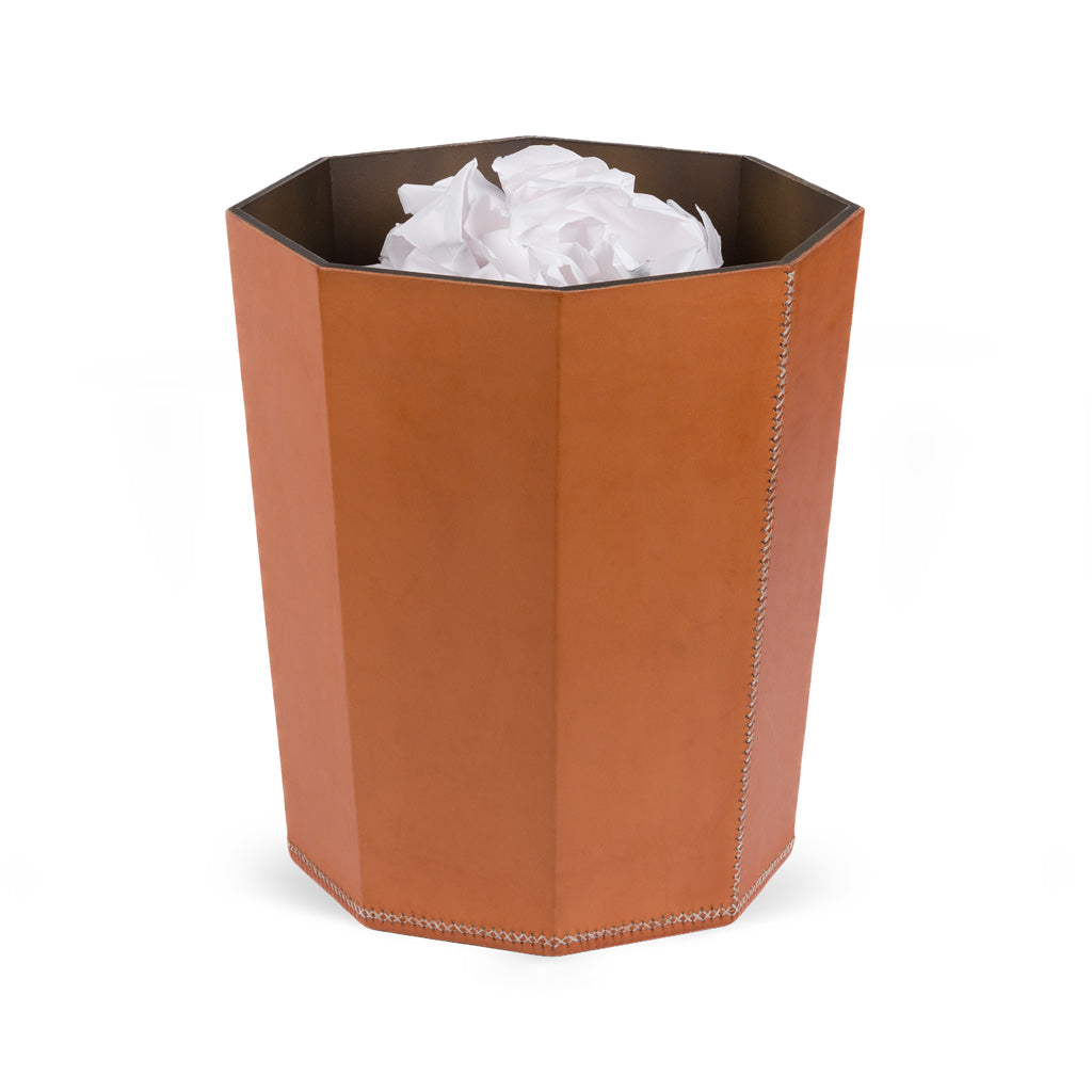 Papier- und Mehrzweckkorb aus reinem Naturleder, hergestellt in traditioneller Manufaktur in Südeuropa.