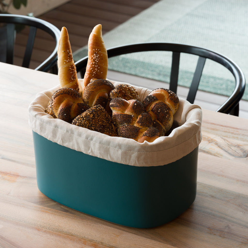 Da Leinen insgesamt den Feuchtigkeitshaushalt regelt, bleibt Brot und Gebäck länger in ursprünglicher Qualität und Konsistenz. Darüber hinaus wird die Schimmelbildung gehemmt und es können sich keine chemischen Stoffe in der Umgebung freisetzen wie z.B. bei Kunststoffen.Leinen ist atmungsaktiv, deshalb kann bei Lagerung des Leinenbrotbeutels im offenen Raum das Brot im Anschnitt schneller austrocknen. Idealerweise das Brot im Leinenbeutel zusätzlich in eine Lade oder einen Schrank geben, am besten jedoch in den Stillsegler Pagnotta Brottopf.