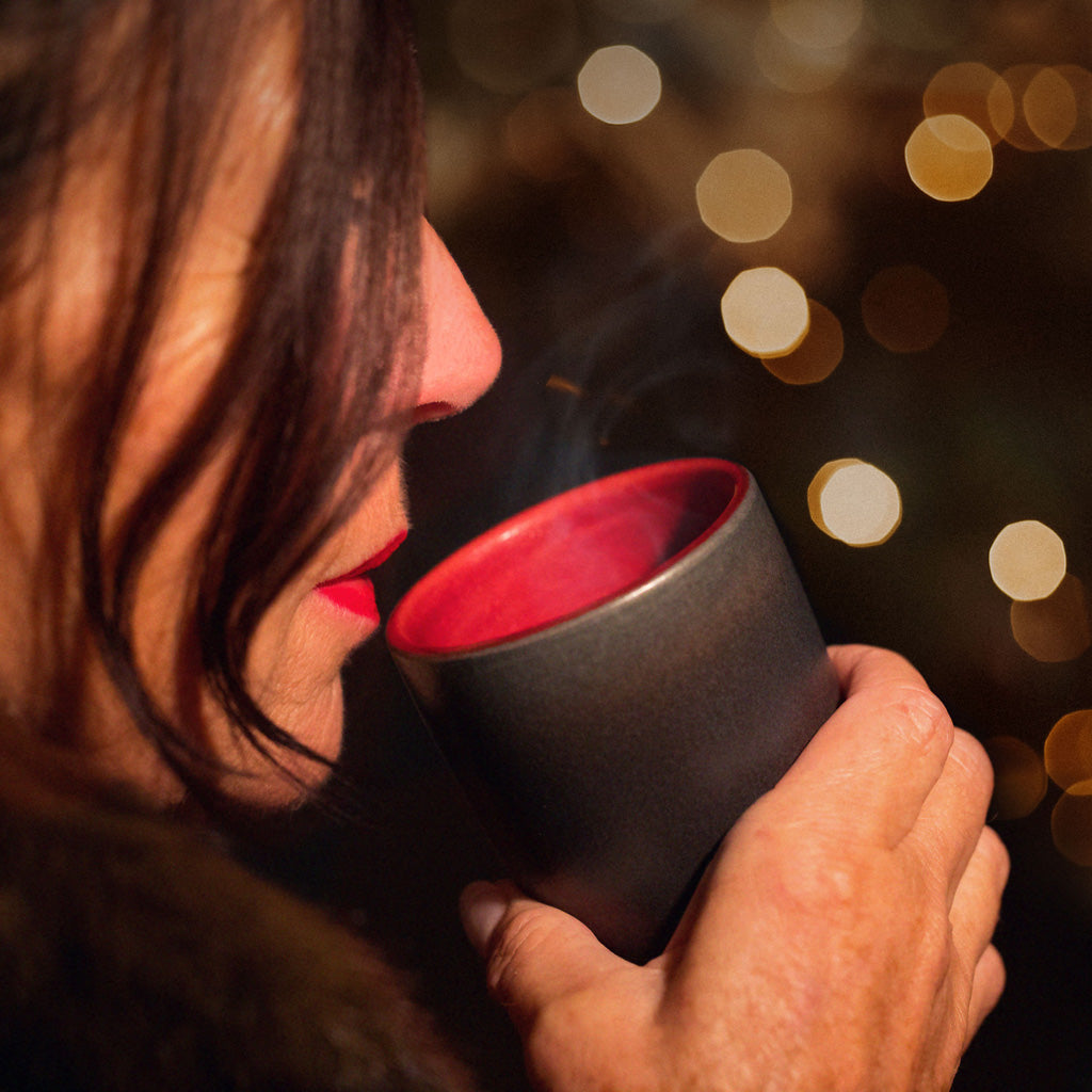 Zusammen mit gedrechselten Nussholz Untersetzern ergeben die farbenfrohen Keramikbecher eine gelungene Kombination aus wertvollen Naturmaterialien und hochwertiger Handarbeit.
