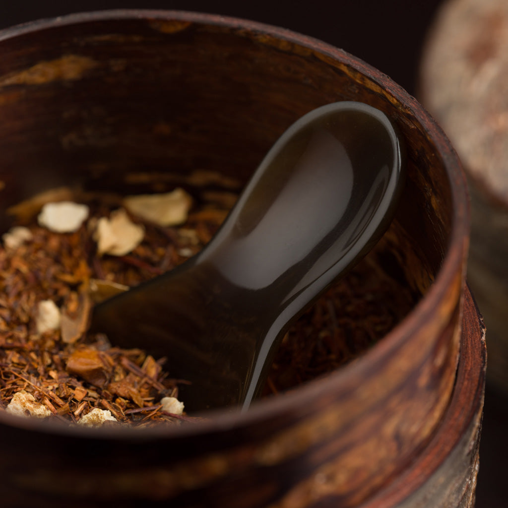 Das Besondere an einer Teeschaufel aus Büffelhorn liegt mitunter in der Einzigartigkeit des Materials. In liebevoller Handarbeit werden praktische Accessoires zu attraktiven Unikaten poliert. Keines gleicht dem anderen.